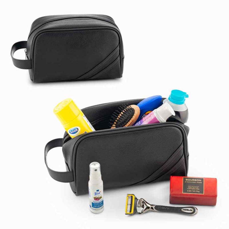 Organizador en poliuretano con agarradera lateral. Un bolsillo interno con cremallera. Medidas: 24.5 cm x 16 cm x 8 cm. Marca: 8 cm / Screen.