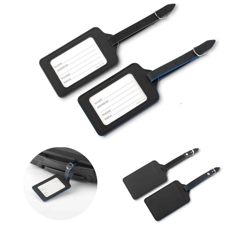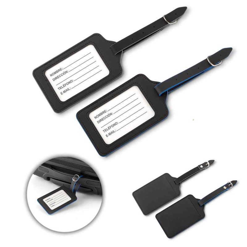 Identificador de maletas en poliuretano. Medidas: 12 cm x 7 cm. Marca: 5 cm / Tampografía.