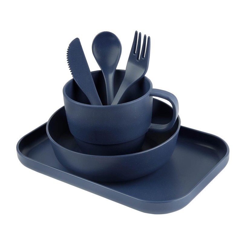 Descripción 1: VAJILLA INDIVIDUAL ZEKEDescripción 2: Vajilla de 6 piezas con material eco-friendly. Contiene plato extendido, plato hondo, taza, cuchara, tenedor y cuchillo. Con un diseño