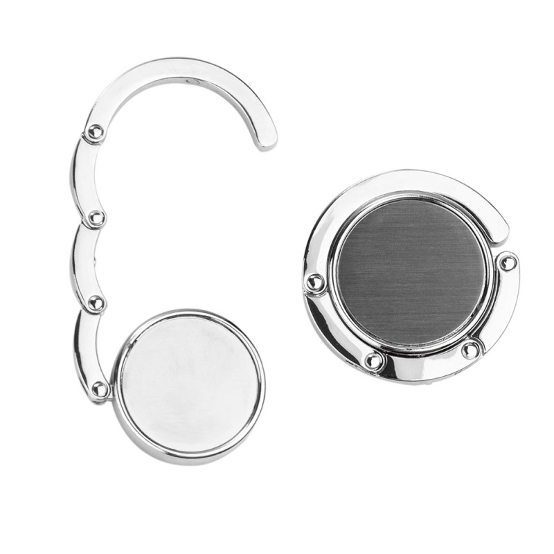 Anillo metálico porta bolsos, práctico, compacto y fácil de transportar. Ideal para mantener el bolso limpio y seguro, evitando el contacto directo con el suelo. Su diseño permite sujeta