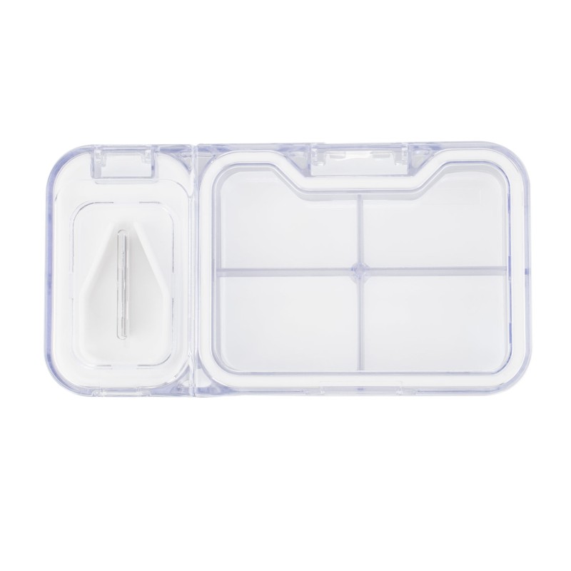 Pastillero elaborado en PP con diseño práctico que incluye cuatro compartimientos de almacenamiento (8,2 X 6,1) y un cortador de píldoras integrado (3,7 X 6,1). Ambos espacios cuentan con cierre a presión, asegurando un manejo seguro y organizado. Ideal para mantener las dosis diarias ordenadas y facilitar el consumo de medicamentos en cualquier momento.