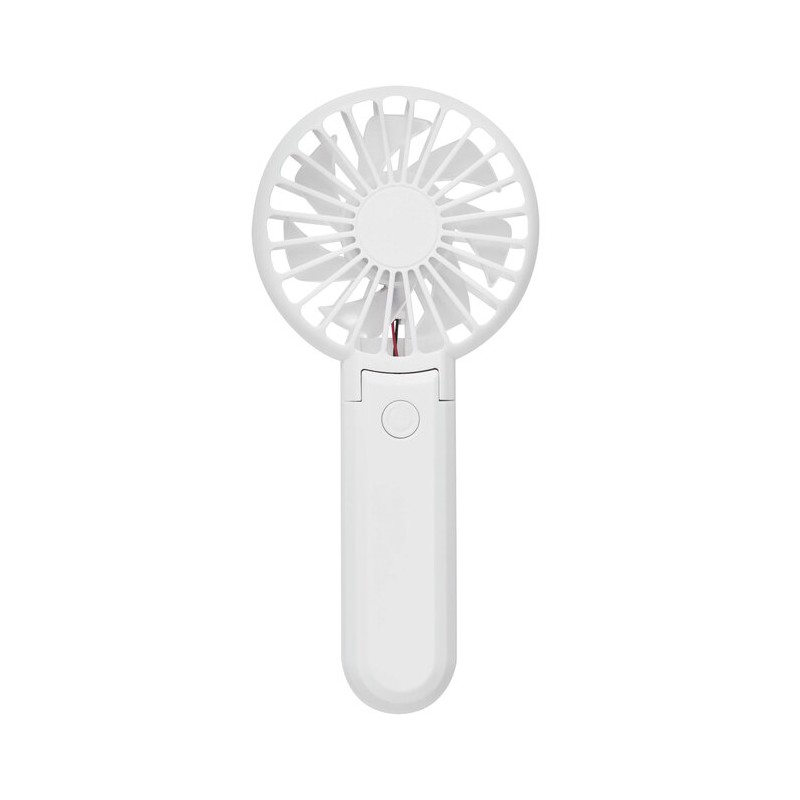 Frescura portátil, donde estés.Mini ventilador portátil. Plegable a 180° con doble función, de mano y de escritorio.  Diseño compacto, tamaño de bolsillo, ligero y fácil de transportar. 3 velocidades (niveles de flujo de aire: bajo, medio y alto). Silencioso. Batería recargable via USB. Cable de carga USB C color blanco.Medidas: 7,8 x 17 x 2,5 cm. y 7,8 x 9,5 x 4,5 cm. (plegado) Materiales: Plástico ABS Batería: 300 mAh Presentación: en caja de regalo kraft