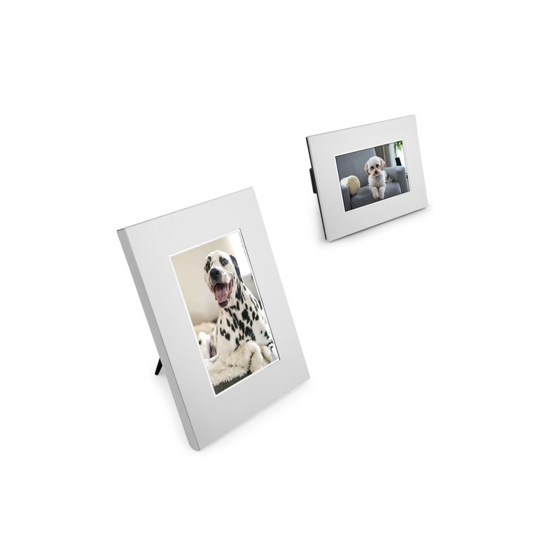 Portarretratos en aluminio, diseño rectangular. Tamaño mediano.