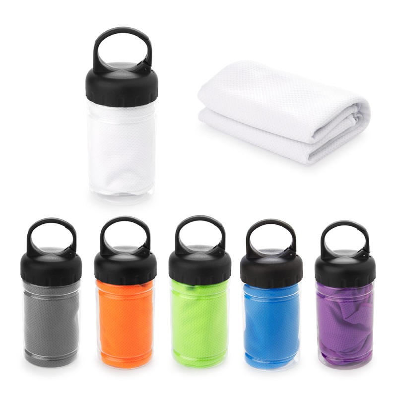 Paño absorbente. Toalla de enfriamiento elaborado con tejidos que permiten una evaporación eficaz del agua, ayudando a quitar el calor del cuerpo y reducir la temperatura de la fibra, para alcanzar un efecto fresco. Reutilizable, ideal para el deporte, verano etc. Incluye estuche con gancho carabinero para fácil transporte.