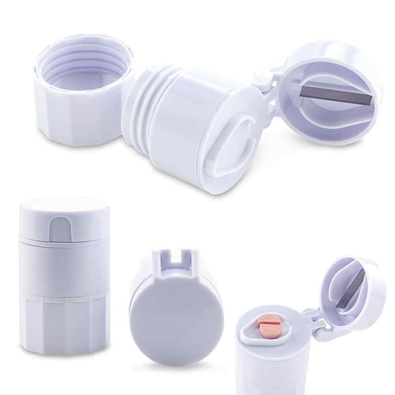 Pastillero plástico circular con cortador y dos compartimentos. Medidas: 6.2 cm x 4 cm diámetro Marca: 2.5 cm / Tampografía Ficha Técnica
