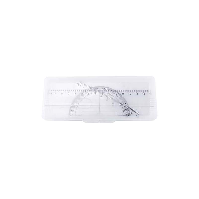 Descripción 1: ESTUCHE DE GEOMETRÍADescripción 2: Incluye regla, transportador y escuadra.Tamaño: 16.4 x 6.7 cmPeso: 16.5Altura: 0.295Anchura: 0.385Longitud: 0.45Tecnica de impresión: SerigrafíaArea de impresión: 14.5 x 4.5 cm