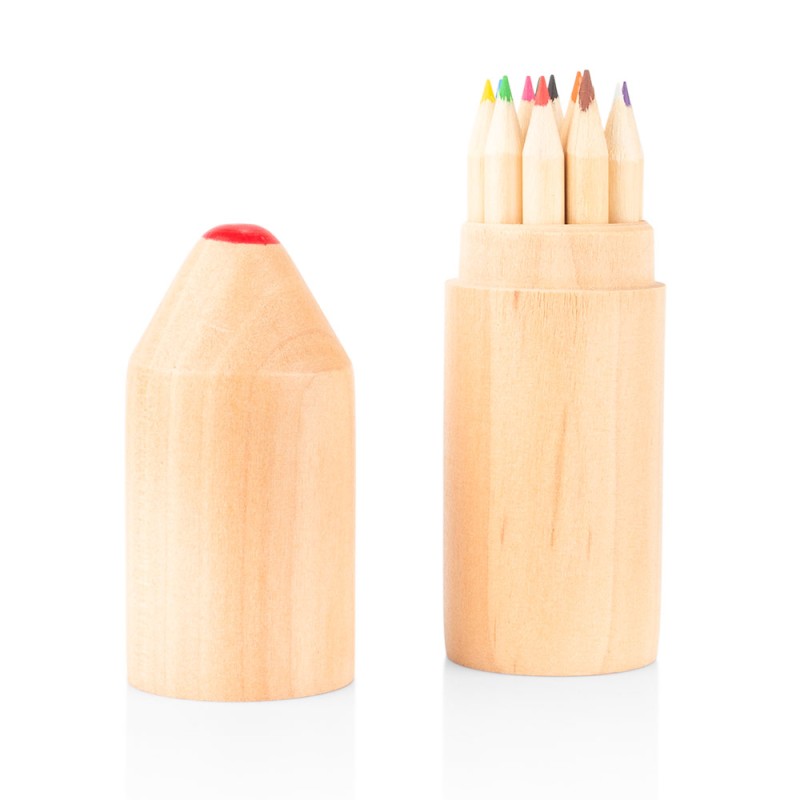 Este juego incluye 12 lápices de colores (8,7 X Ø 0,3) presentados en una caja de madera, ideal para mantenerlos organizados y protegidos. Su formato compacto
