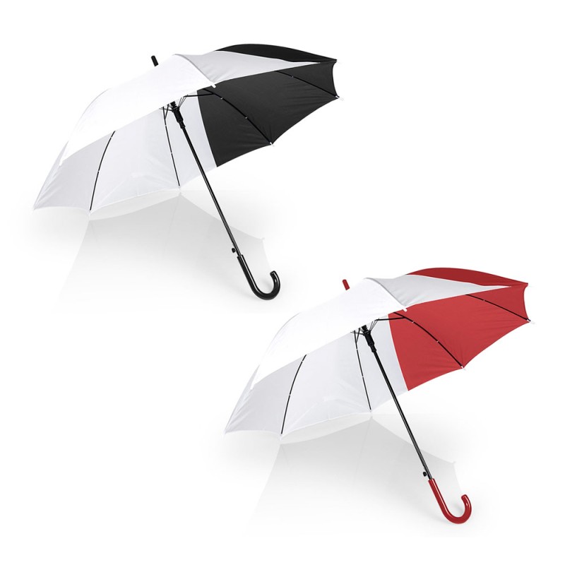 Paraguas de 23'' sistema de apertura automática y cierre manual, 8 cascos, eje y varillas metálicas con recubrimiento negro, 190t tela pongee. Mango curvo plástico en PP curvo a juego con el color de la tela. (Paraguas/Sombrilla)