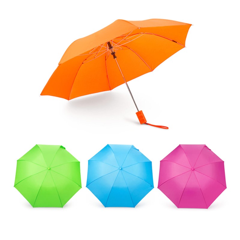 Paraguas de 21 pulgadas y 2 secciones en colores neón, con eje y varillas metálicas. Apertura automática y cierre manual. Incluye funda del mismo color del paraguas. (Paraguas/Sombrilla)