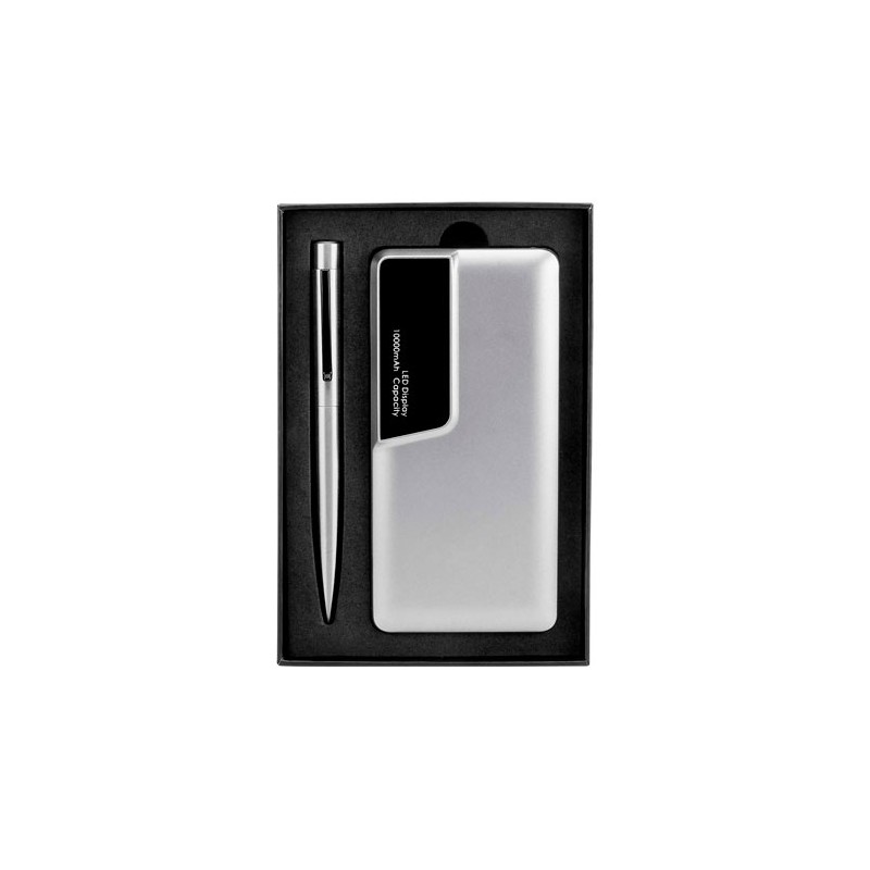 Descripción 1: SET KLADNODescripción 2: Incluye batería auxiliar de 10,000 mAh, con salida USB, entrada micro USB y tipo C, display para mostrar nivel de batería, bolígrafo con memoria USB de 8 GB con función OTG para transferencia de información entre dispositivos, compatibilidad USB / Micro USB, mecanismo twist, tinta negra y caja de regalo.Tamaño: 7 x 14.1 cm Power Bank / 1.4 x 13.8 cm BolígrafoPeso: 17.65Altura: 0.191Anchura: 0.33Longitud: 0.61Tecnica de impresión: Serigrafía en Power Bank y Bolígrafo / Láser en BoArea de impresión: 4 x 4 cm Power Bank / 0.5 x 3 cm Bolígrafo