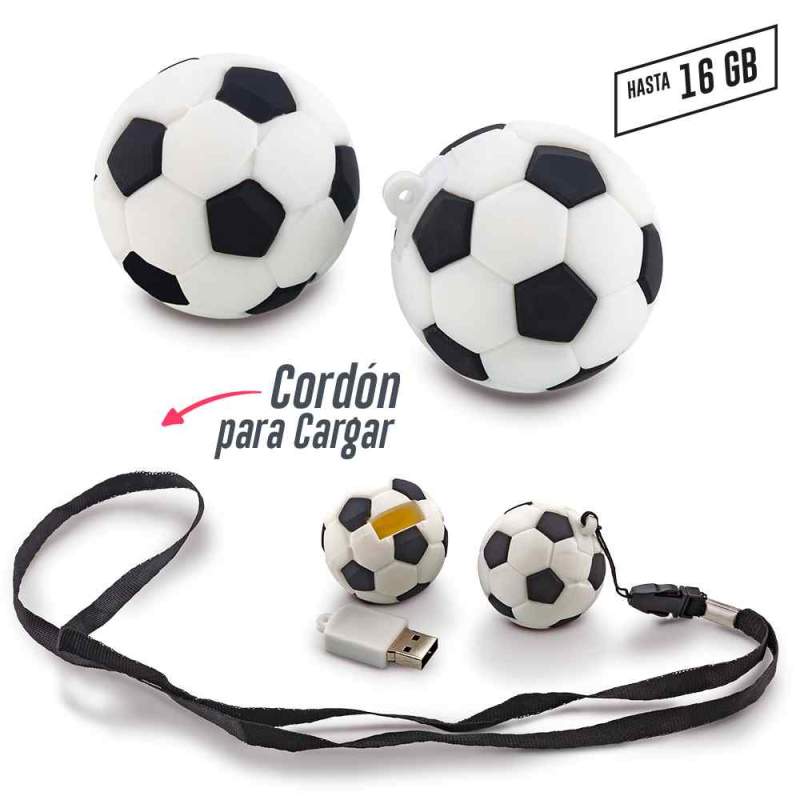USB en PVC con forma de balón. Con cordón para cargar. Ver chips en OF-228CH Capacidad: 4GB / 8GB / 16GB NOTA: Los tamaños de las memorias USB expresado en GB son aproximados, debido a que la capacidad de almacenamiento (que muestran en el empaque) está expresada en el sistema decimal.   Tabla de Espacio Real Memoria de 4 GB en realidad contendrá 3,75 GB Memoria de 8 GB en realidad contendrá 7,23 GB Memoria de 16 GB en realidad contendrá 14,9GB Memoria de 32 GB en realidad contendrá 29,8 GB