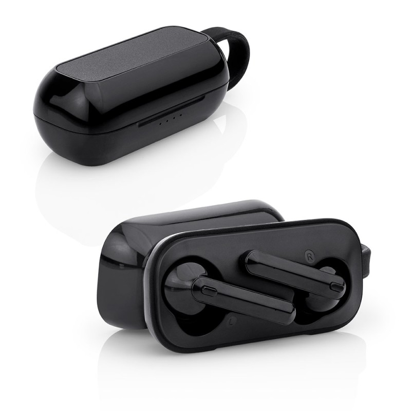 Audífonos inalámbricos TWS. Bluetooth versión 5.0, en estuche de carga imantado.Capacidad de la batería 240mAh. Incluye cable Micro USB para carga.