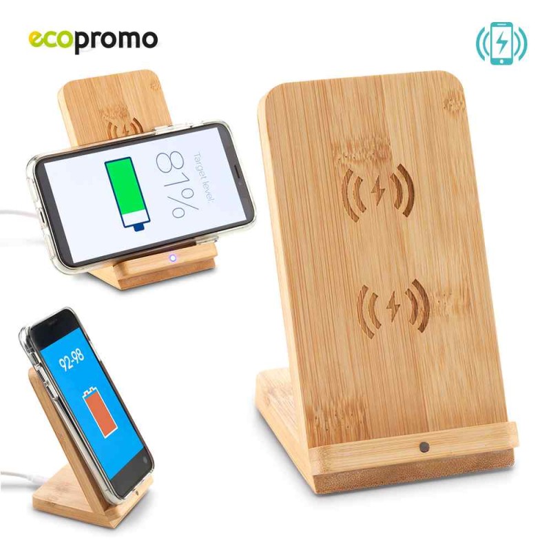 Cargador inalámbrico de 5W elaborado en bambú, permite carga inalámbrica vertical u horizontal en los dispositivos compatibles. Se sugiere su uso con dispositivos de has