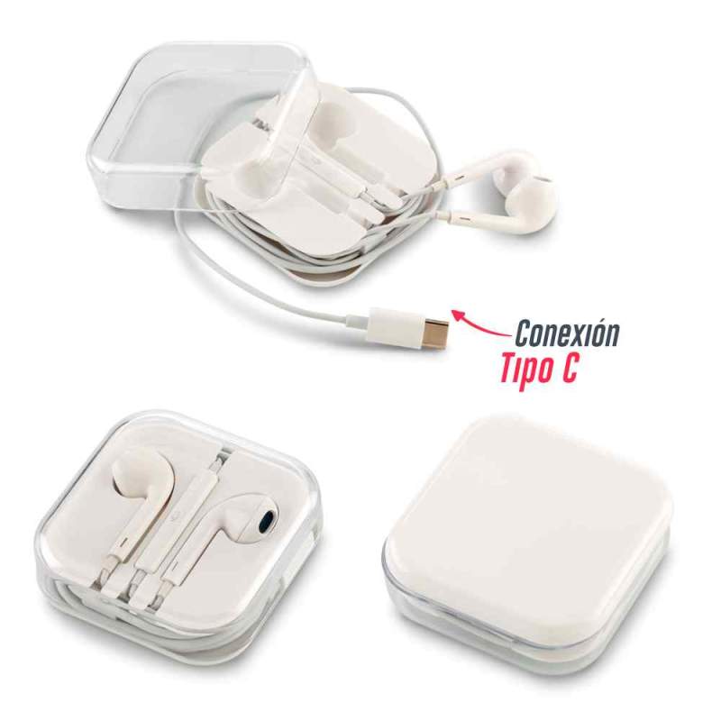 Audífonos plásticos en estuche con organizador de cable, funcionan como manos libres (control de volumen). Estuche empaque individual.  Medidas: 6 cm x 6 cm x 2 cm  Marca: 3.5 cm / Tampografía Ficha Técnica
