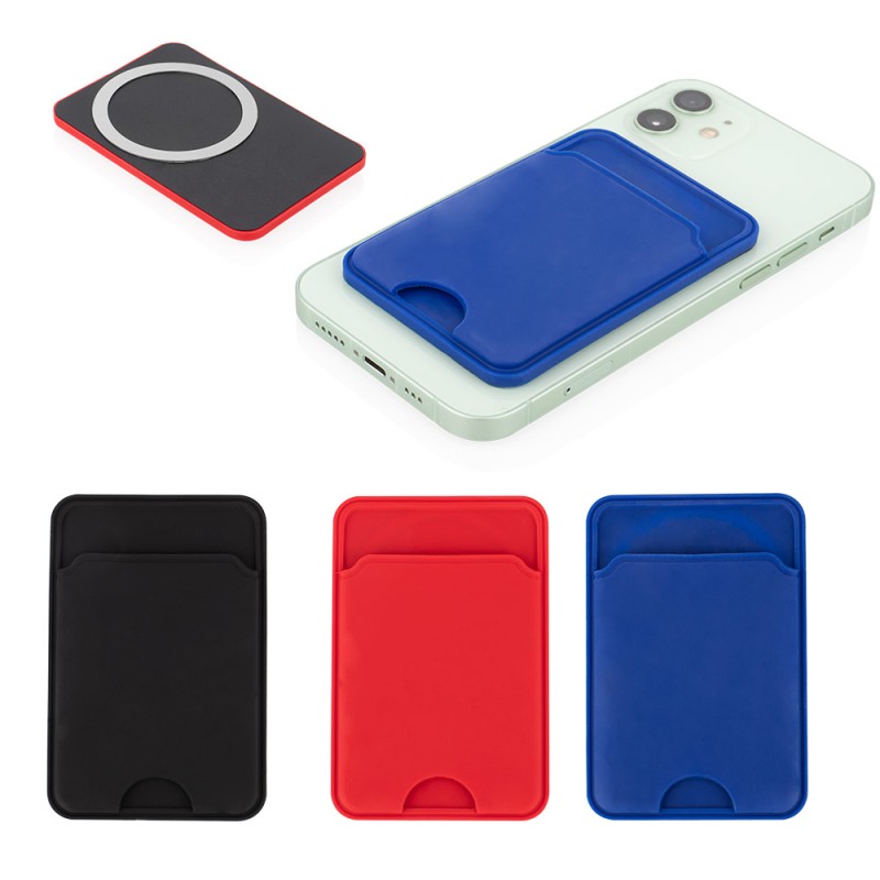 Tarjetero elaborado en silicona flexible, diseñado con tecnología MagSafe para adherirse directamente a la parte posterior del teléfono de manera segura y pr