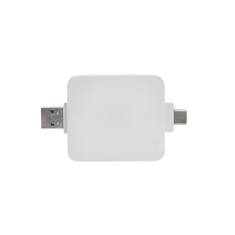 Un solo adaptador, muchas solucionesMini adaptador HUB multipuerto. Entrada: 1 x USB-A / 1 x USB-C. Salida: 2 x USB-A / 2 x USB-C con conectores rebatibles.Medidas: 5,2 x 4,6 x 1,3 cm. Materiales: Plástico Presentación: en caja de regalo kraft