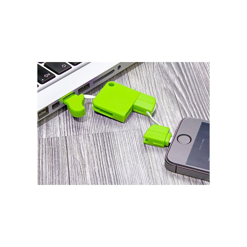 Cable de carga USB en forma de mano con conector Dual: Micro USB para dispositivos Android y Lightning para Iphone en un mismo puerto. Conector Tipo-C. Permite